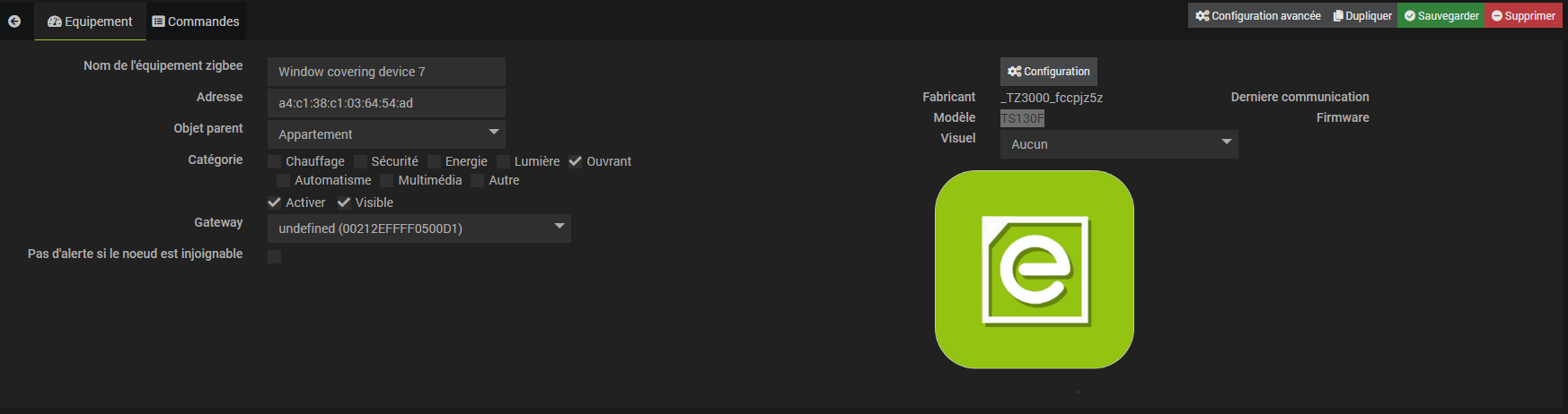 J’ai un petit soucis avec TS130F il fonctionne bien et il est bien pris en compte par Deconz sur une Conbee II, mais je n’arrive pas a avoir le bouton pour le configurer que certains ont dans les divers post que j’ai pu trouver.