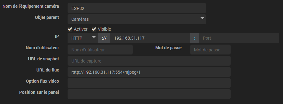 Mais pas d’image dans Jeedom de la caméra ESP32