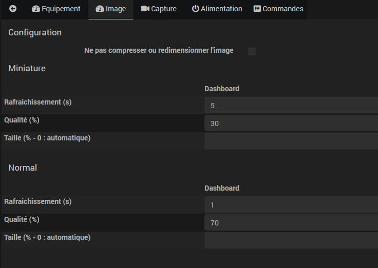 J’ai baissé la résolution à 800x600 et coupé l’autre caméra pour avoir que celle-ci et toujours rien sur Jeedom.