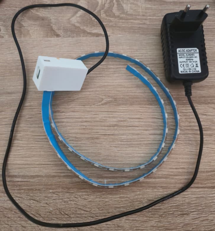 - Si ruban 12V (mon cas) : Alim 12V + Level Shifter (signal DATA) + Convertisseur DC-DC Step-Down (12V vers 5V pour l’ESP).