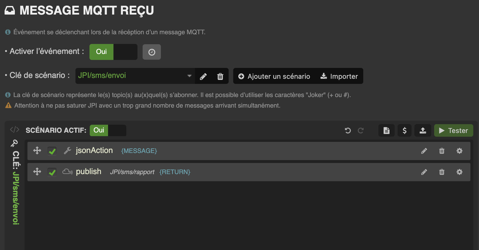 - Ajouter la liste suivante des animations disponibles au niveau de la commande action comme sur la capture :