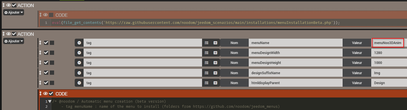 Mais actuellement ce n’est pas possible (ou plus précisément non testé et validé) d’avoir 2 menus dans la même page car ils risquent de se faire concurrence et se mélanger entre eux.