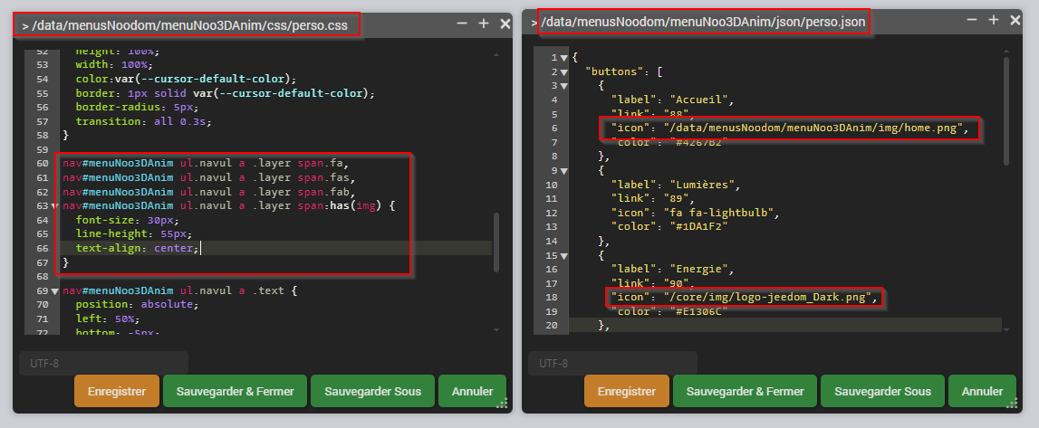 Ajouté au fait que le menu soit paramétrable par un simple fichier Json à modifier, il n’est plus nécessaire d’aller modifier le contenu du code pour modifier son apparence.
