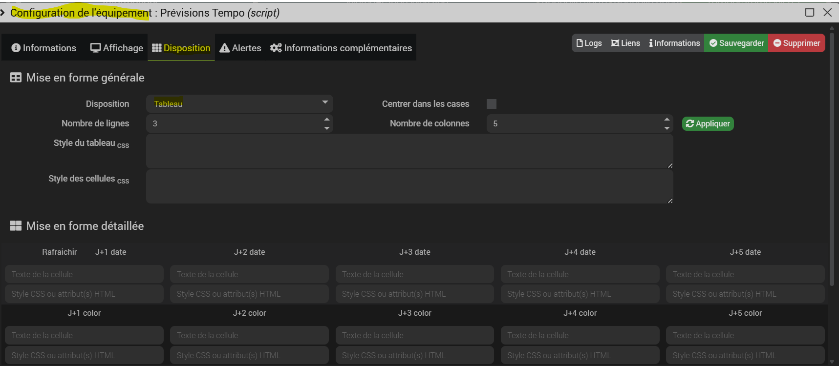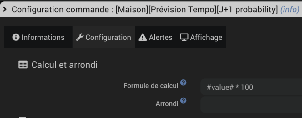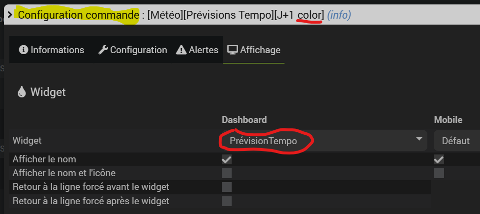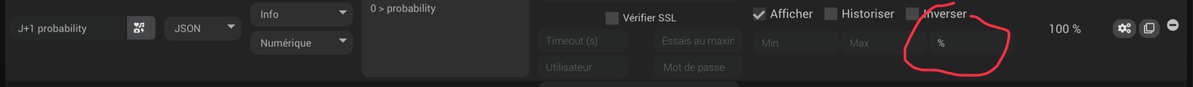 - Créez un widget « PrévisionTempo » de type Info / Autre / Multistate