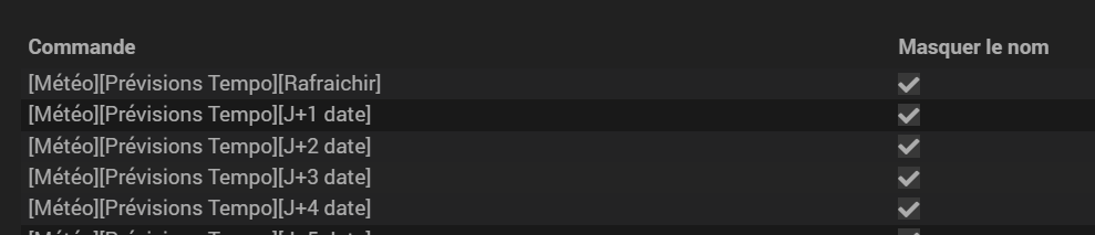 Il ne vous reste plus qu’à peaufiner un peu en allant dans la configuration avancée de l’équipement, en masquant les noms des commandes et en distribuant les commandes dans un tableau