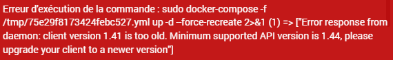 Je suis incapable de me rappeler la commande que j’avais passé, mais j’avais aussi au début un message de version et j’avais mis à jour docker compose en ssh.