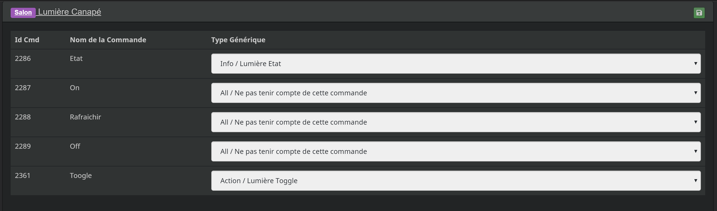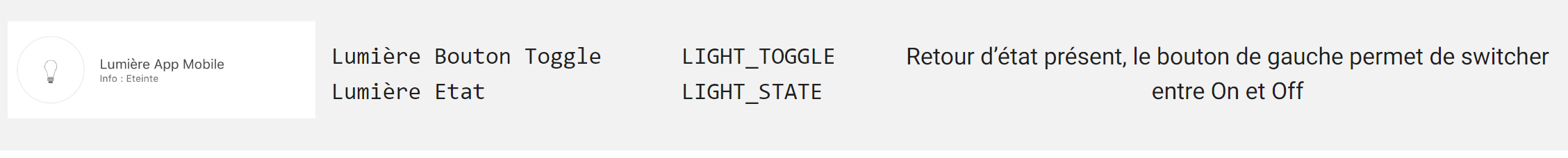 Pour ne faire qu’une commande dans l’appli mobile où quand on appuie, soit cela fait on soit cela fait off. Si ce n’est pas un toogle, tu es obligé d’ajouter 2 commandes (on / off) et une info pour afficher si c’est ok ou off.
