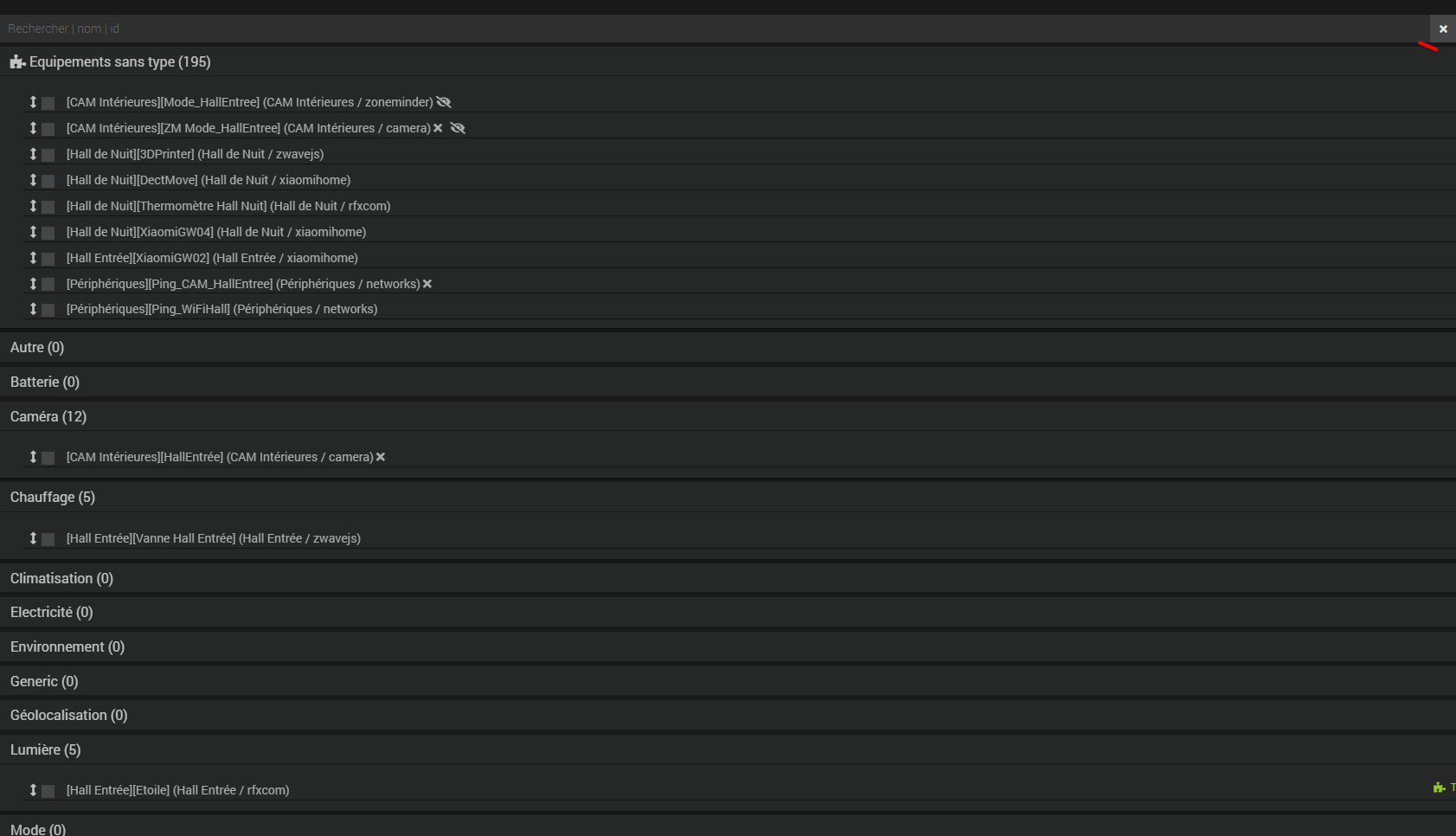 Aller dans Type équipement Dans la zone de recherche faire une recherche