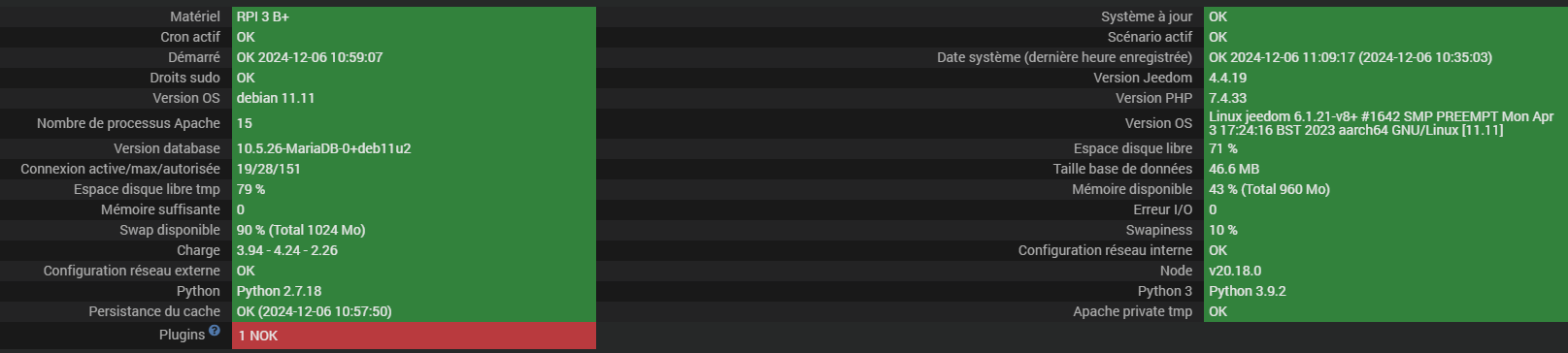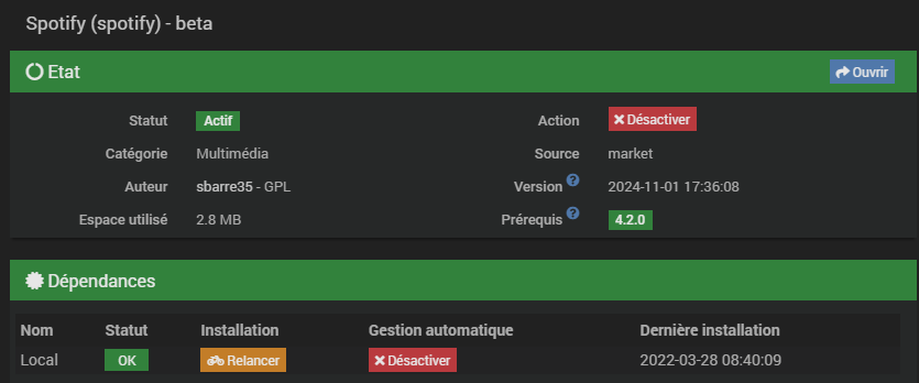 A savoir, que la santé de Jeedom était clean, mais maintenant le statut démon de spotify est NOK.