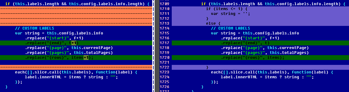 Le diff avec ce que vous avez fait à gauche: