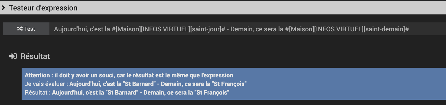 On voit que le résultat contient des " qui posent problème, étant donné que la commande de text est aussi entre ". Je sais qu’il y a une solution pour ça (j’ai essayé avec un \ devant l’équipement) mais je ne parviens pas à trouver.