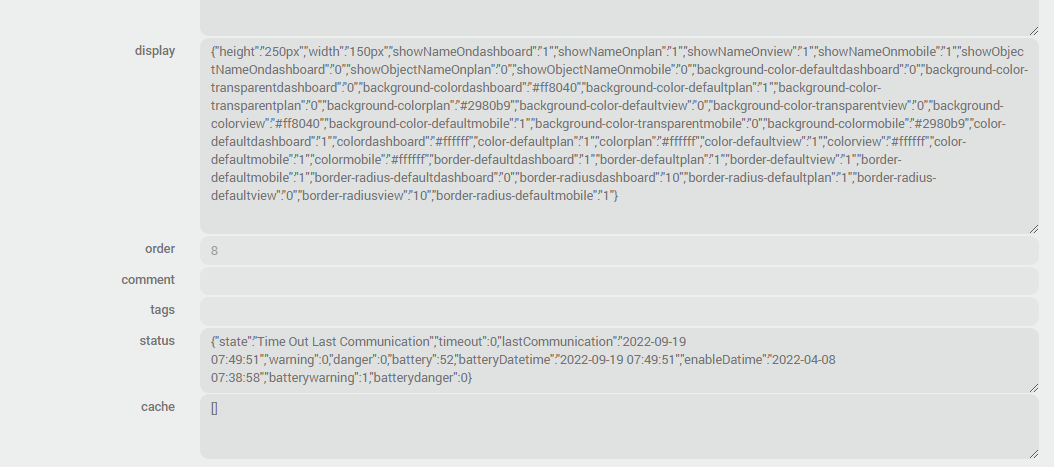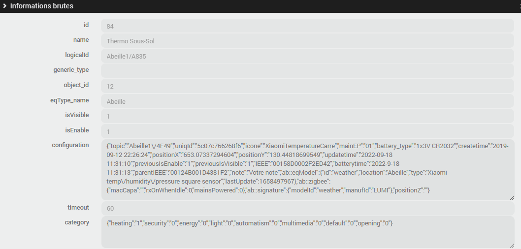 Il faudrait voir la page « information » de l’équipement pour vérifier les infos bruts sauvées dans l’équipement.