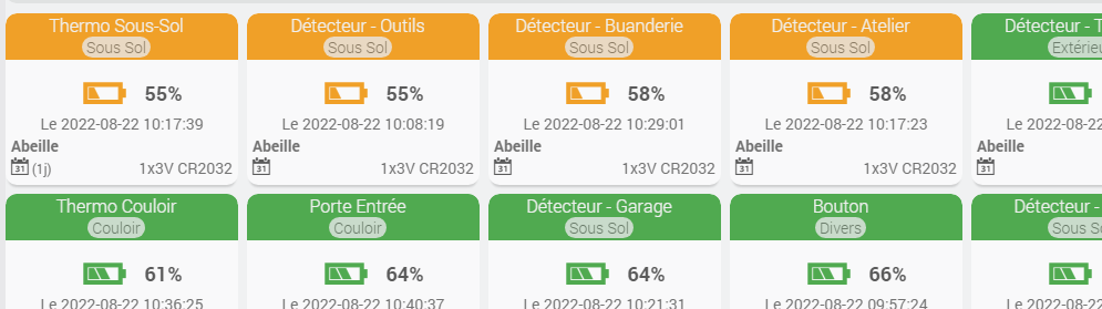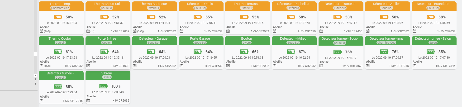 Même à 52% on ne devrait pas avoir d’alarme de batterie, j’ai d’autres équipements en ‹ Orange › et qui ne sont pas en alarme (ce qui est normal au regard de ma configuration).