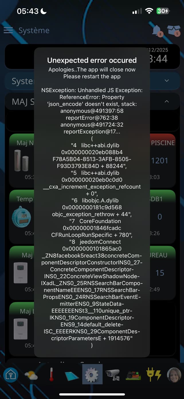 Problème sur une seule page de l’application. comportant des widgets infos
