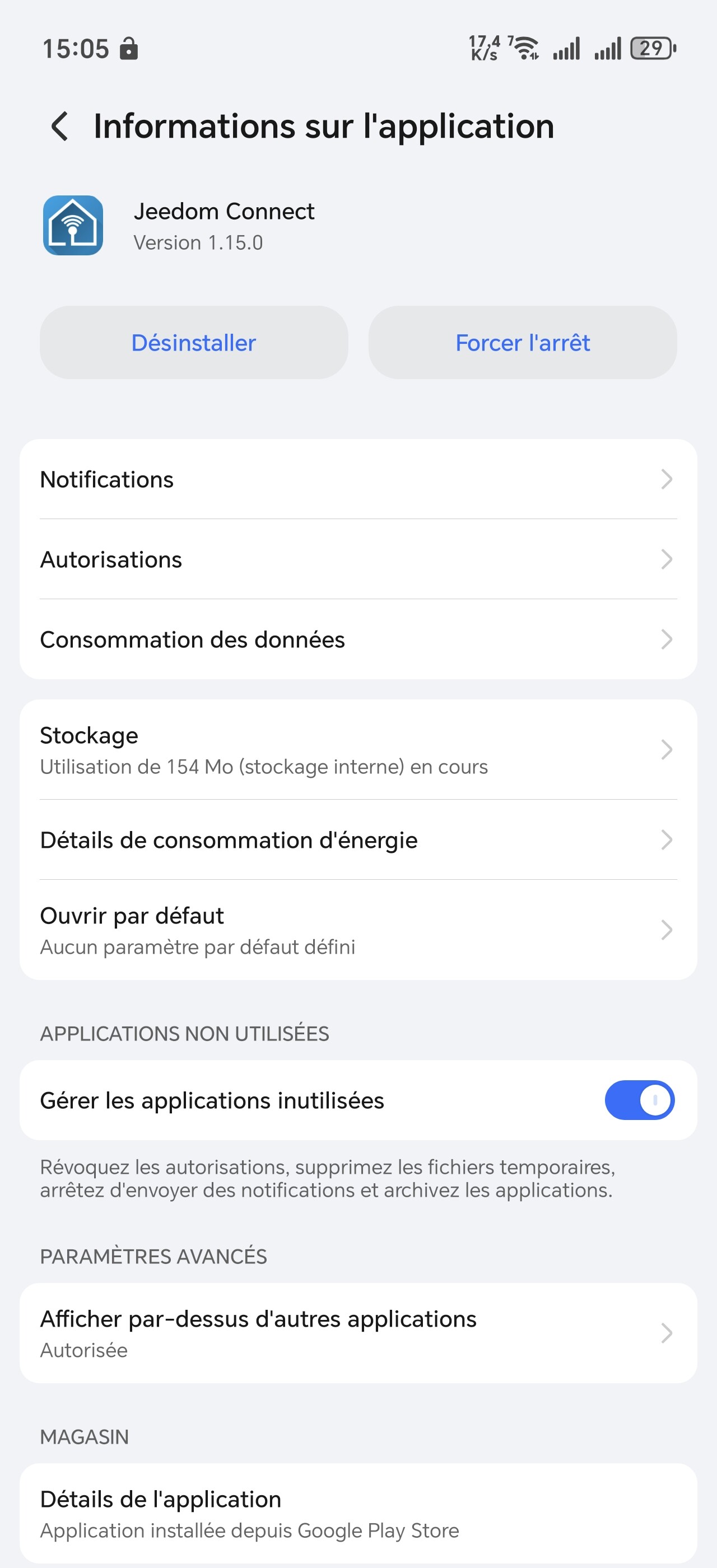 Connect xxxx: v1.15.0 stable sur android [os : 29] (ws) - PA