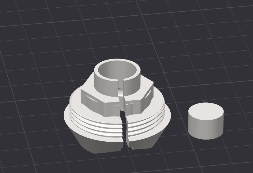 J’ai préféré le modeliser moi même pour avoir une bouche plus large afin que le piston interne du fibaro n’ait pas de contraintes liées au trou et puisse même rentrer dedans. Vu que je peux pas voir ce qui se passe quand la tête est montée j’ai préféré ainsi.