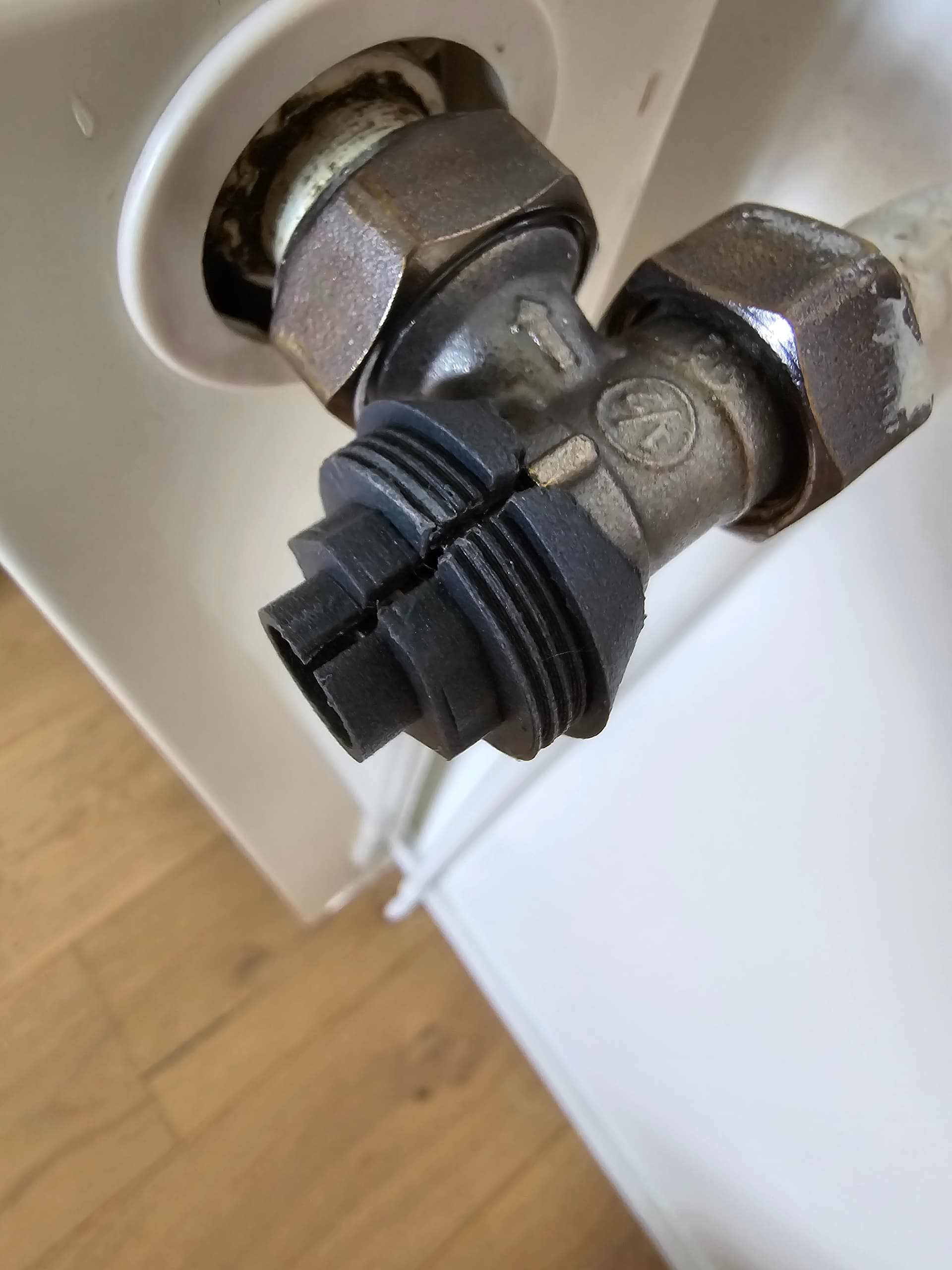 Tout d’abord j’ai mis des têtes thermostatiques sur des adapteteur pour valve Giacomini que j’ai moi même modélisé en 3D en partant de cette base ( Giacomini Adapter by gbp - Thingiverse j’ai repris le filetage) et ça ressemble à ça: