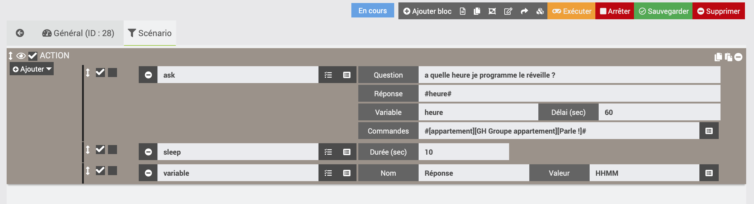 la ask me permet donc d’obtenir par google l’heure du dit réveille, j’ai besoin de cette heure comme variable pour lancer un autre scenario a la dite heure