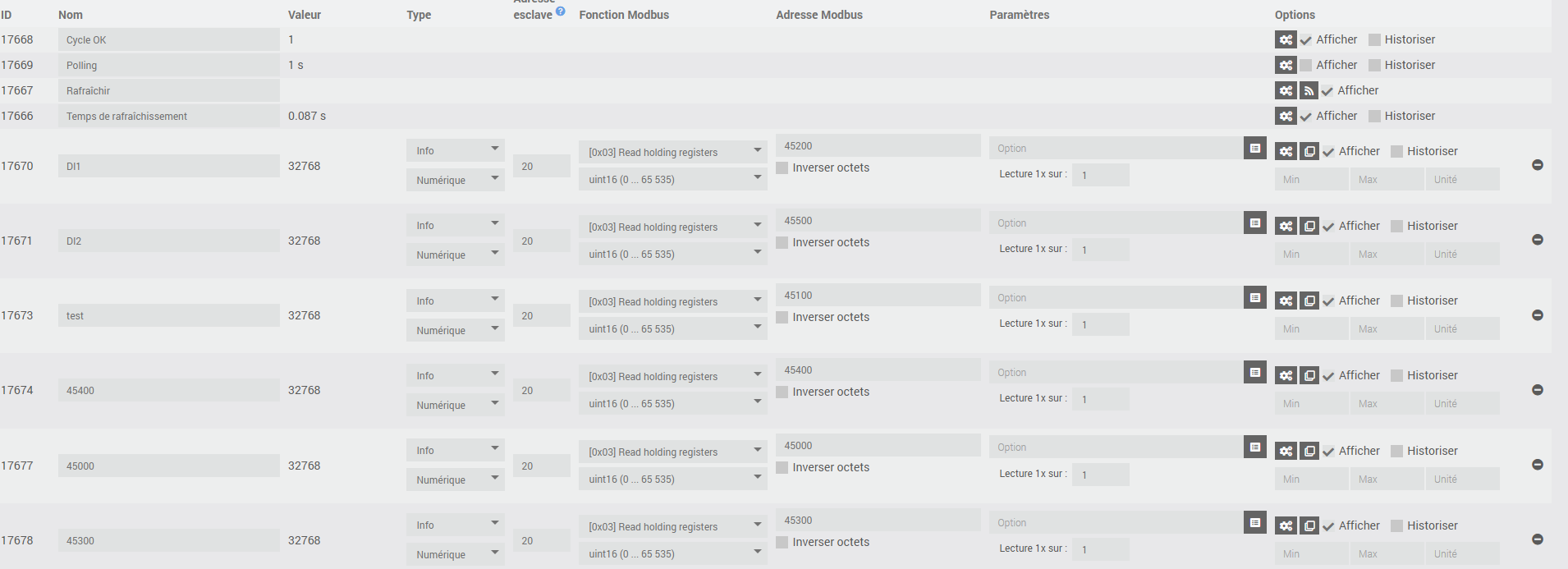Dans cette version bêta il est possible de créer un équipement de test dans lequel on peut tester l’existence et la valeur des registres. Ce serait intéressant de savoir ce qui existe et les formats.