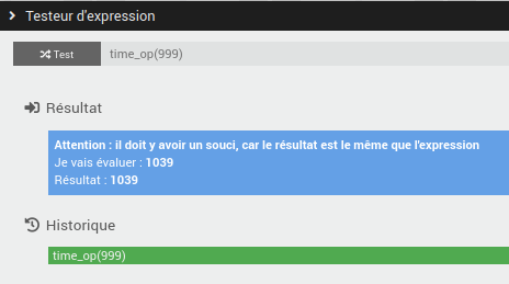 J’ai trouvé : time_op(1000, rand(-15,15)) la c’est mieux @Madcow => effectivement en remplaçant « Value » par "Rand(x,y) @Bison => J’utilise bien la formule dans un « A », j’ai mis un screen du testeur d’expression car plus lisible qu’un log de scénario. Mais tu dis « Juste la fonction rand() » mais je suis bien obligé de lui mettre un time_op avant ?! Bref c’est résolu @Jeandhom => Bien vu ! time_op(998) = time_op(1038)