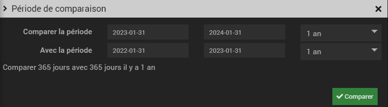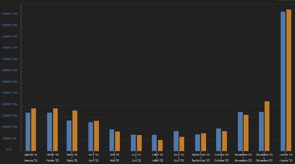 J’essaie de créer un graphique historique de mes consommations électriques, mais pour une raison que j’ignore, en mode comparaison de périodes, j’ai toujours un mois avec des valeurs incorrectes (même en changeant de période).
