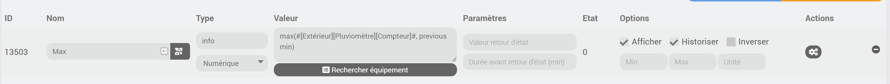 Pour le virtuel, oui, effectivement, je pourrais créer une autre commande, avec un scénario associé qui déclenche un #event basé sur le maximum de la commande chaque minute… Du travail en perspective ; ce n’est pas idéal, mais c’est une solution.