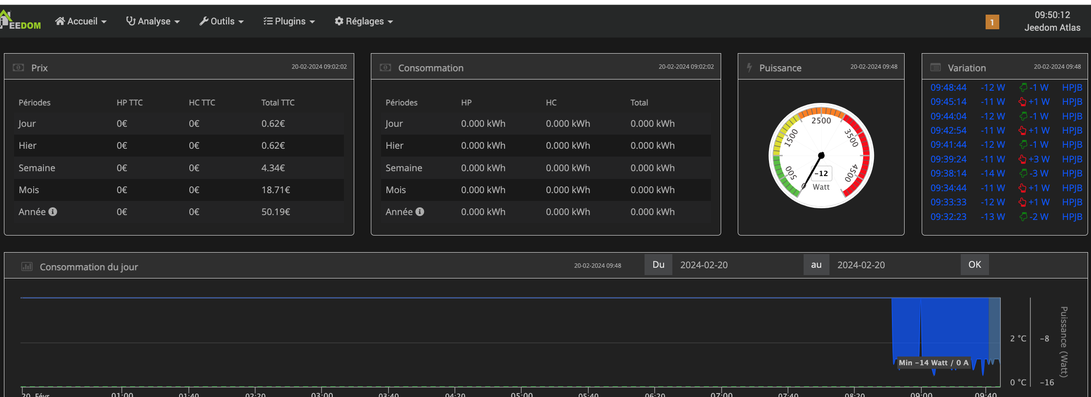 Je viens de rajouter un équipement sur mon plugin, et je n’arrive pas à comprendre pourquoi le graphe m’indique des valeurs négatives sur la puissance instantanée, alors que dans la configuration de l’équipement il y a bien une valeur positive quand on fait le test? J’ai déjà intégré plusieurs équipements et je n’ai jamais eu ce problème. Pouvez vous m’aider à résoudre mon problème? Merci