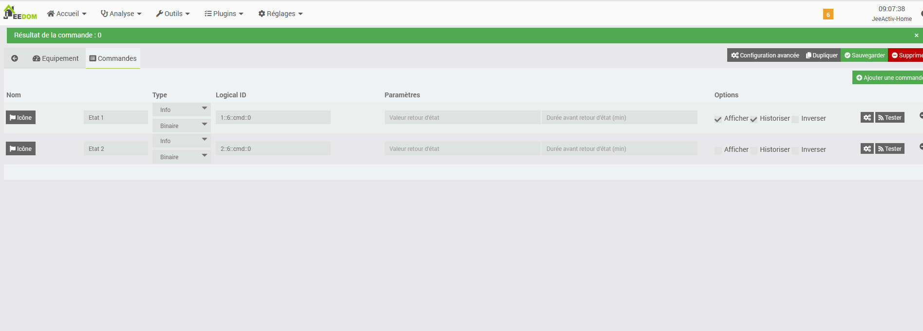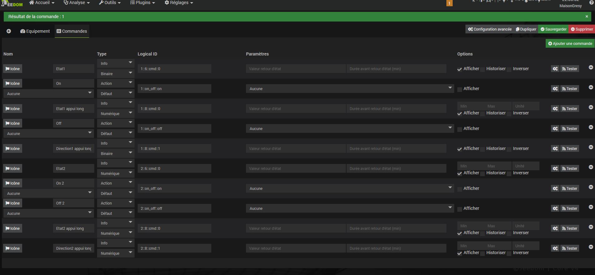 L’autre bouton de la commande présente le problème avec jeedom.