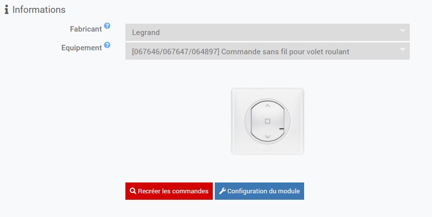 Voici ci dessous une capture de mes commandes de la commande sans fil Legrand.