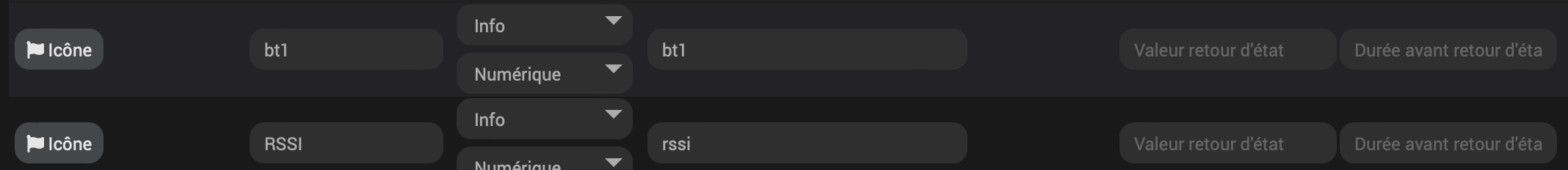 Si j’allume la lumière avec l’émetteur Chacon du kit, je vois bien l’info bt1 qui passe à 1, si j’éteins elle passe à 0. Donc je communique bien avec l’équipement.