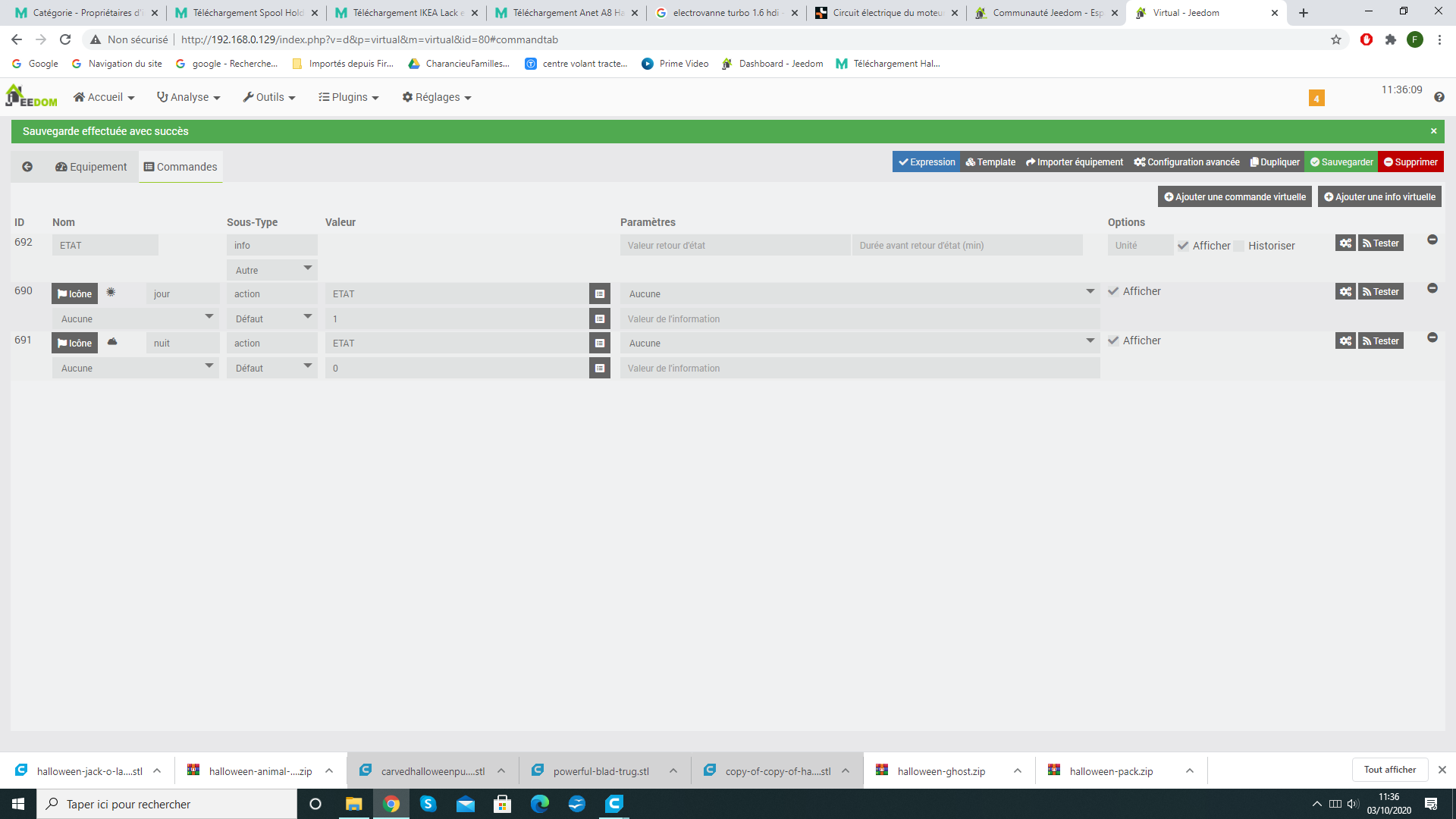 Ton virtuel comporte quelques erreurs, tu dois lier les noms Jour et Nuit à Etat et l’information crée et du type Info/binaire,