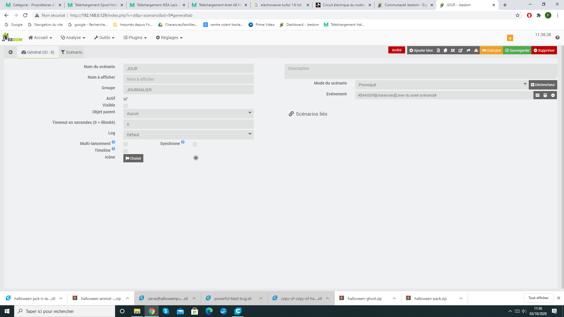 Ensuite le plugin mode peut déclencher des actions directement sur le changement de mode (exemple passage des volet en mode nuit/jour) et au besoin je consulte si je suis en mode nuit ou jour pour des éclairages extérieurs par exemple.