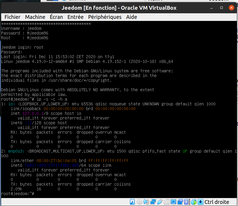 iso utilisée pour créer la VM : jeedom-debian-buster-amd64-4.0.61.iso