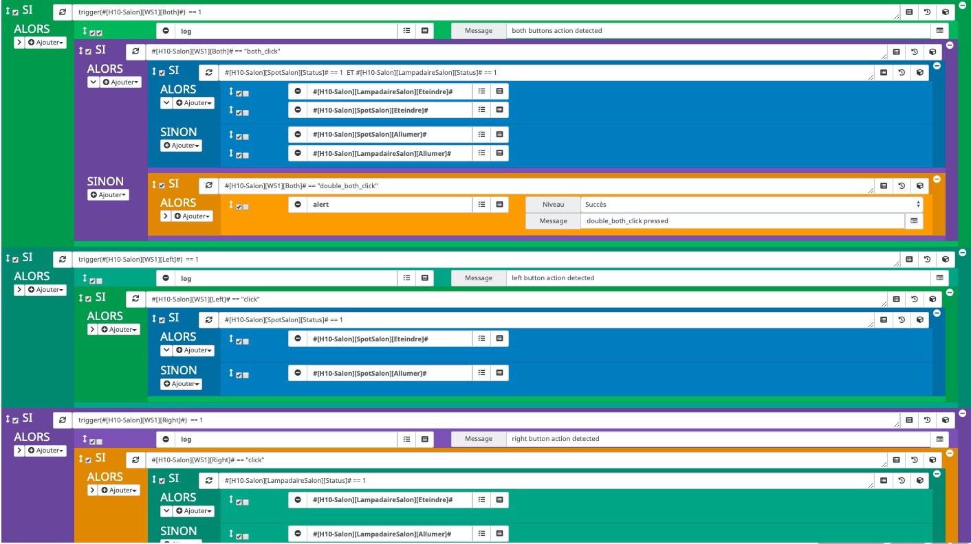 J’ai le plugin XiaomiHome des lampes Ikea et je viens de recevoir des interrupteurs WallSwitch 2 bouton (sans fil) j’ai n’ai trouvé que des vieux articles concernant leur mise en œuvre et lors de la réalisation de scénarios je me suis retrouvé avec des surprises si j’essayais de faire un seul scénario avec les 3 boutons (Left, Right, Both) compte tenu de la persistance des statuts.
