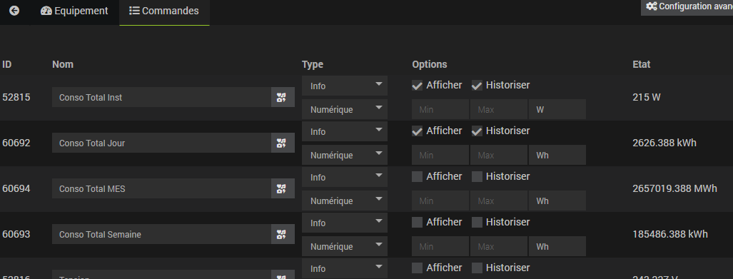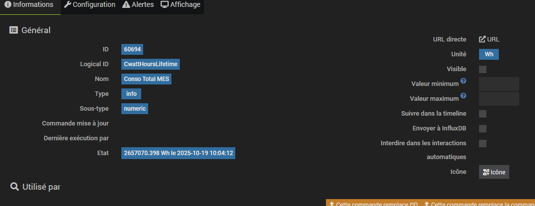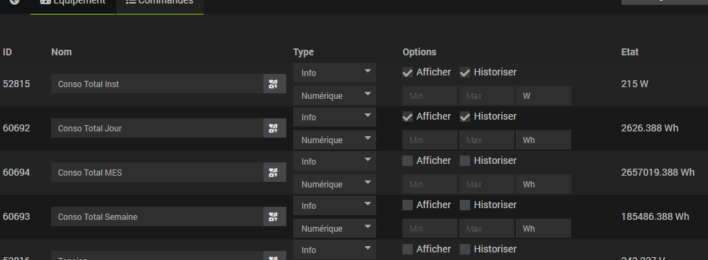helloo désolé si cela a déjà été abordé mais je constate simplement que l’affichage d’une valeur par exemple Conso Total MES sur Jeedom change d’unité de Wh à MWh au bout d’un moment (mais sans que le nombre lui-même soit différent sur la page - voir l’exemple 2). est-ce que c’est normal? c’est jeedom qui fait ca? merci beaucoup