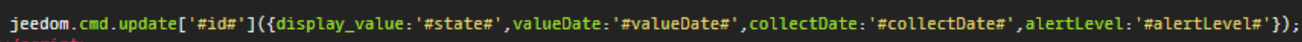 jeedom.cmd.update['#id#']({display_value:'#state#',valueDate:'#valueDate#',collectDate:'#collectDate#',alertLevel:'#alertLevel#'});