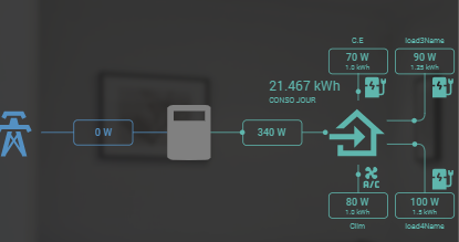 Du coup je vais rester comme dans ma situation 1 (option « Grid » sur le même ID que celui de consommation), c’est ce qui me permet d’avoir le plus d’infos justes sur le même widget. Tant pis si ça « mange » une des bulles de perso