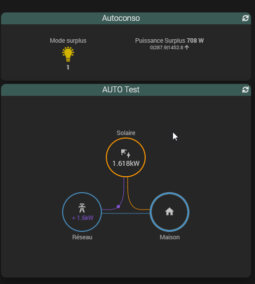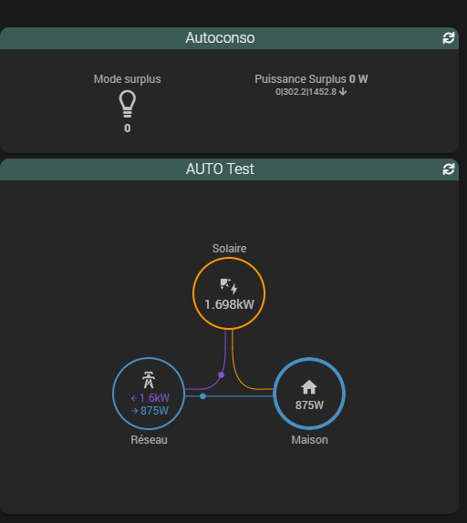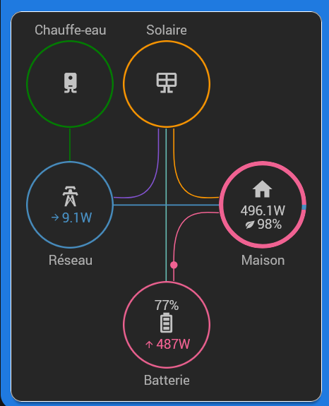 Deja un super merci pour ce widget d’une simplicité et d’une efficacité au top. je viens de le decouvrir et j’ai pu le mettre en place sans soucis majeur, avec mes PV ainsi que le charge VE (a la place de Gas) et le chauffe eau (a la place de Water).
