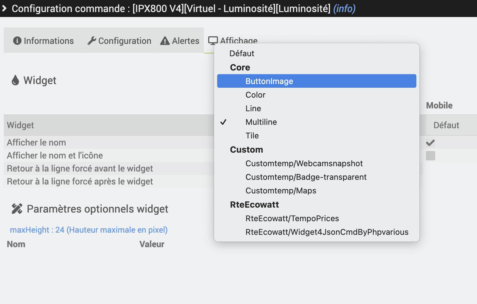Pourriez-vous m’aider concernant l’apparence du widget. Je n’ai pas de type « jauge » dans la configuration du widget virtuel.