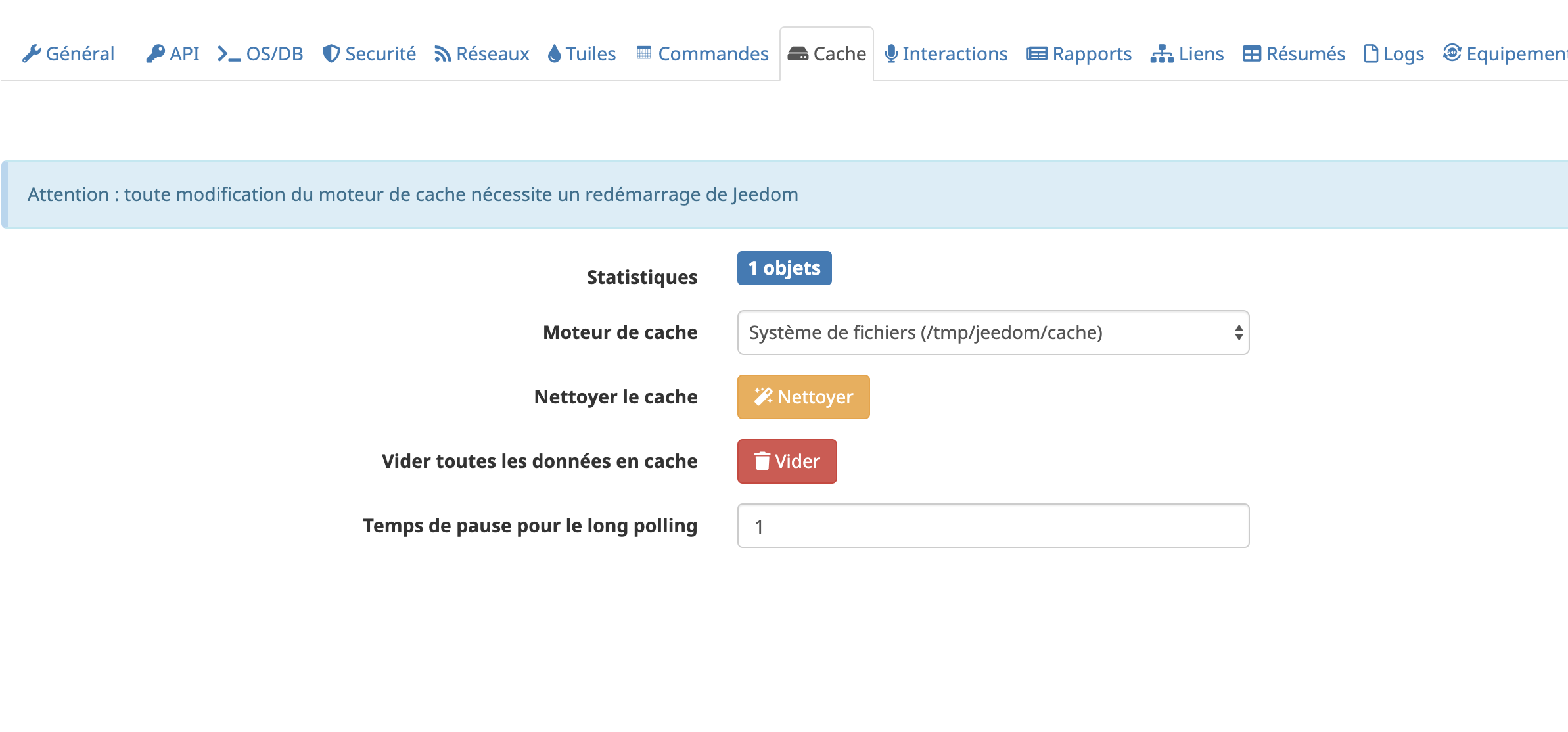 J’ai malheureusement remarqué que le vidage du cache Jeedom entraînait aussi la suppression des états de mes commandes !