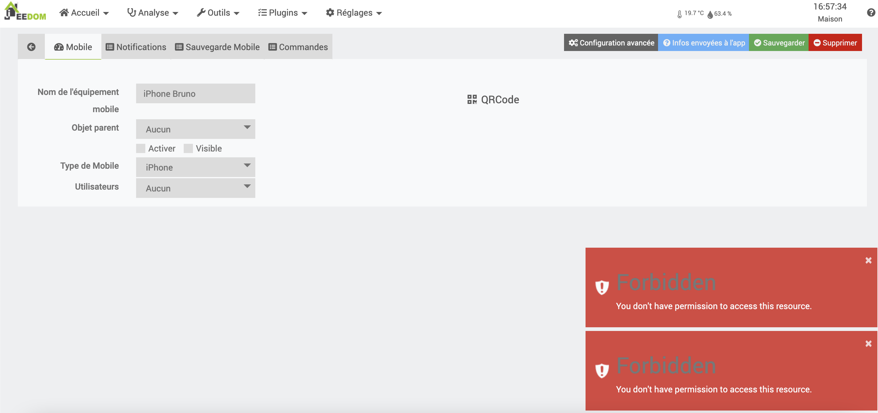 j’ai installé le pluging Mobile mais je ne peux pas ajouter d’appareil.