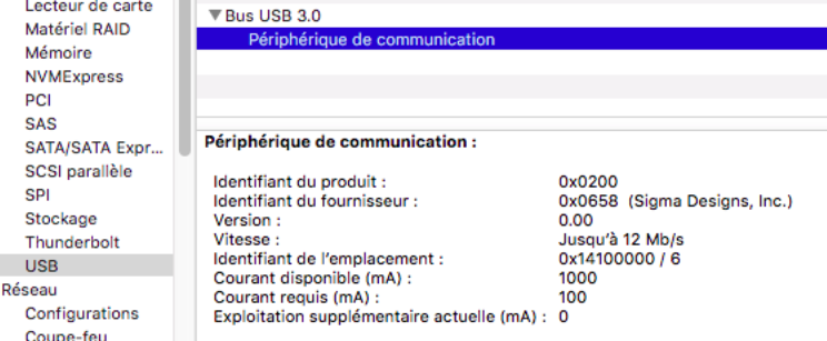 Chez moi (sur un HubDlink USB 2.0) : Bus 001 Device 005: ID 0658:0200 Sigma Designs, Inc. Aeotec Z-Stick Gen5 (ZW090) - UZB