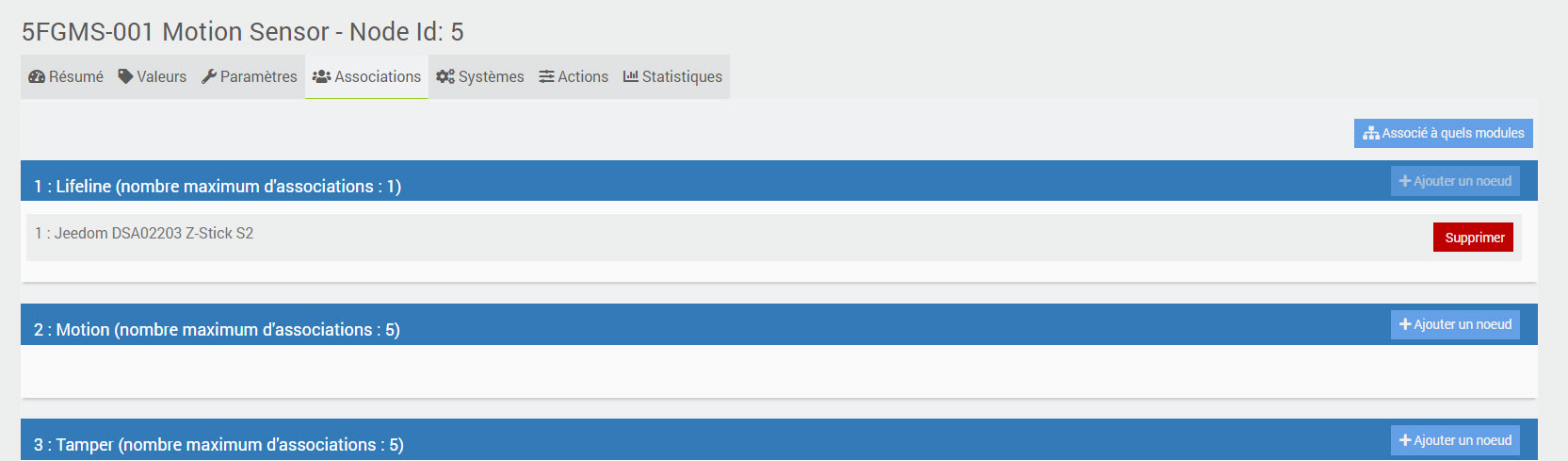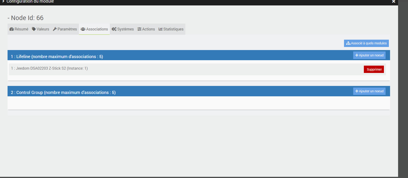 Dans la doc du zuno il est mentionné que qu’il doit faire partie du life line, association group (group#1)