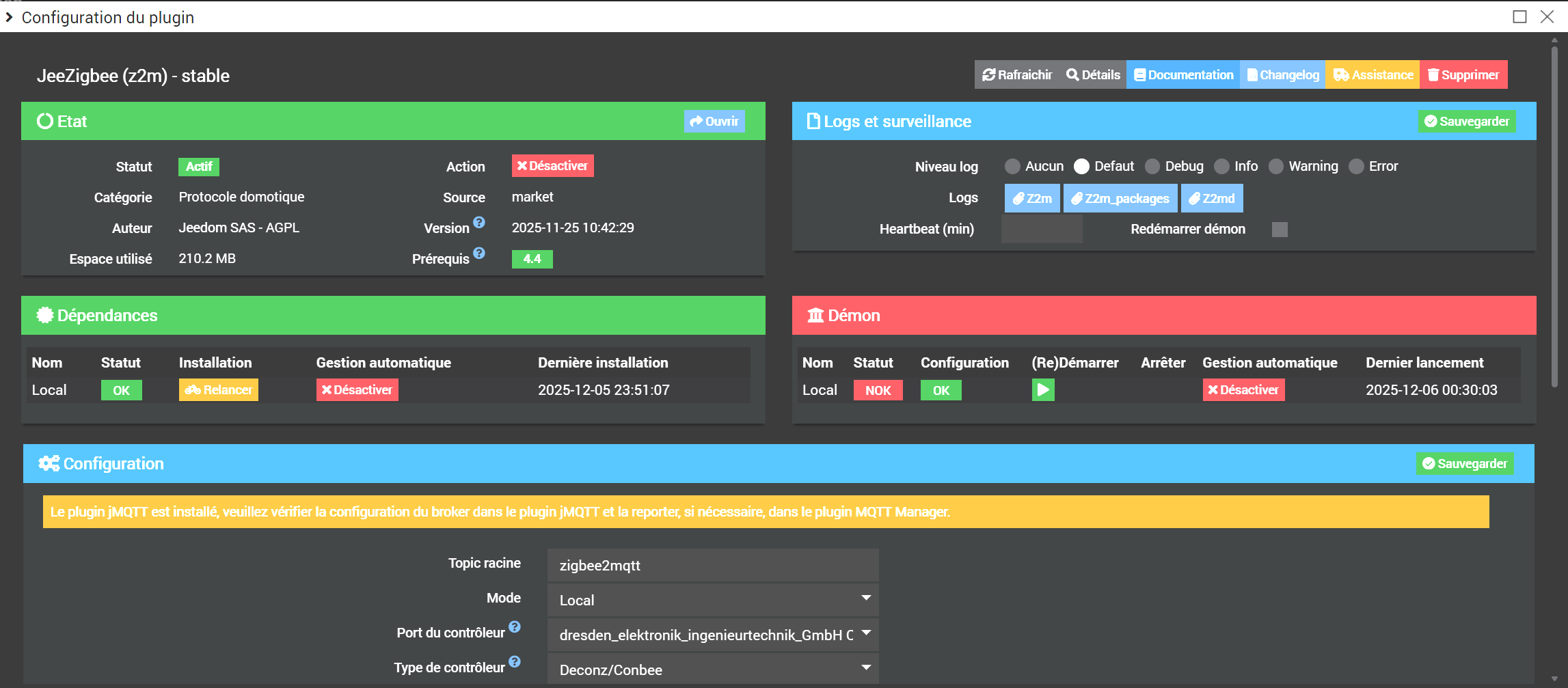 J’ai alors voulu repasser sur la conbee mais le même problème apparaît démon nok sans arrêt