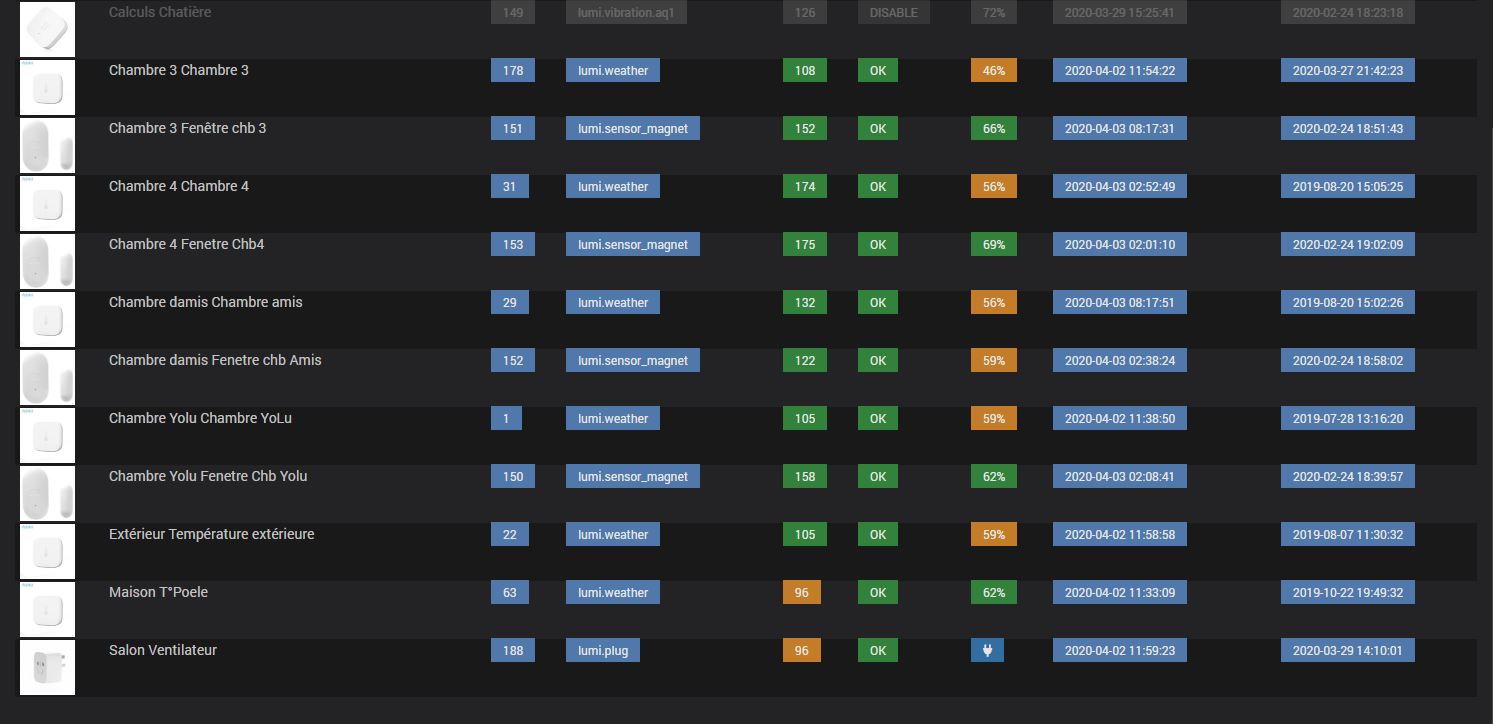 Je vais du plus proche au plus loin de la zigate en commençant par les dispositifs sur secteurs puis batteries.