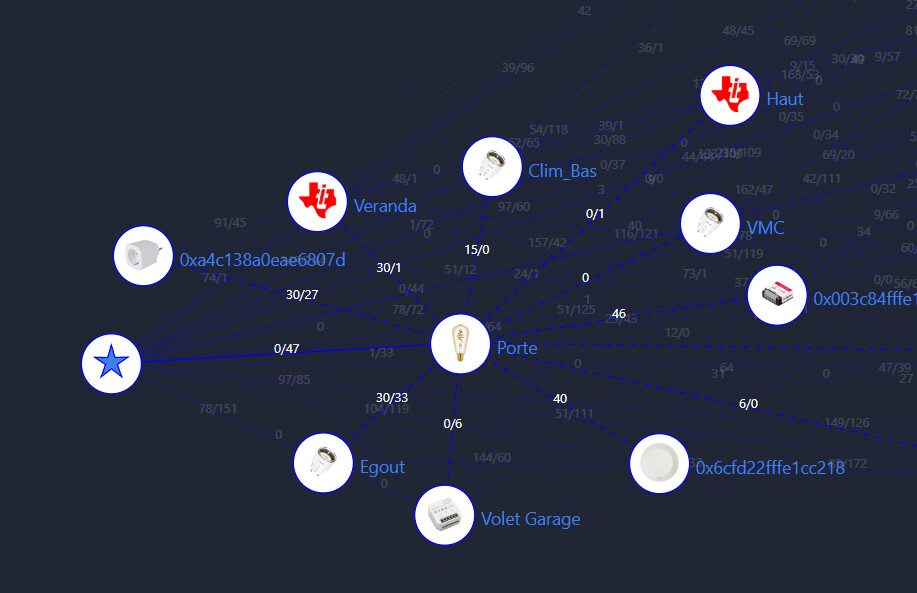 Aussi, en regardant de plus près, la puissance d’émission ne semble plus être de 20 dbm car la qualité du lien coordinateur vers périphérique est moins bonne que périphérique vers coordinateur. Et d’ailleurs un périphérique ne répondait plus ==> ajout d’un routeur et ca repart