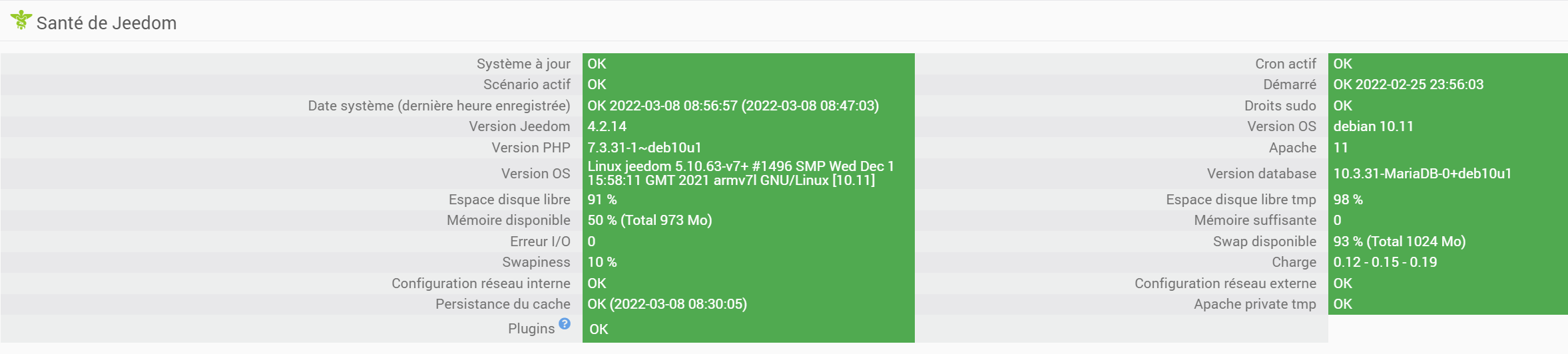 Materiel RPI 3B+ avec jeedom 4.2 installé fraichement de zero suivant la procedure officielle, sur lequel j’ai restauré un backup.
