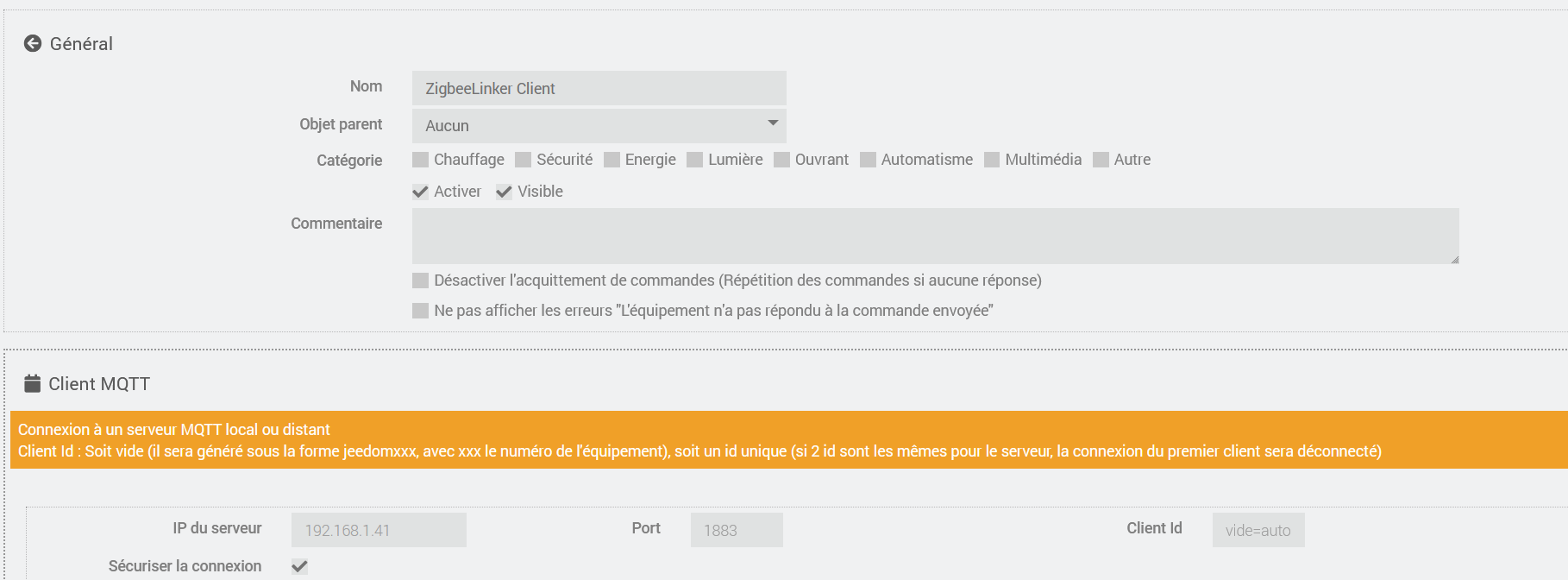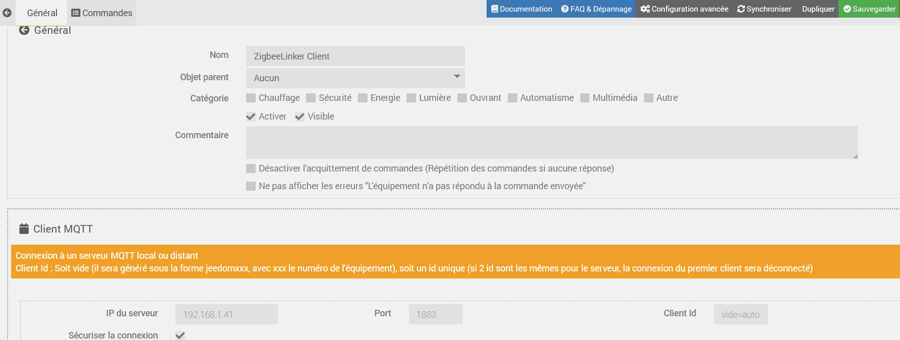alors si vous avez le plugin mqtt manager, il faut laisser option dans zigbeeLinker (zigbee2mqtt + client) sinon il faut mettre zigbee2mqtt + serveur MQTT