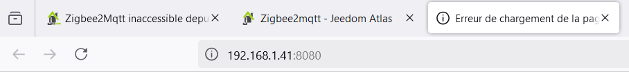 Donc je ne sais toujours pas pourquoi je ne peux accéder à Zigbee2Mqtt