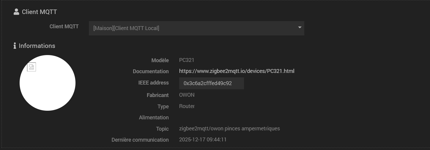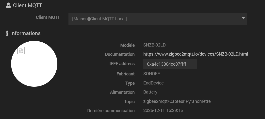 [2025-12-12 13:23:23] DEBUG <--- MQTT message, ieeeAddr not found (Dans l'interface Zigbee2MQTT, vérifiez que vous avez activé l'option Settings->MQTT->Include device information)